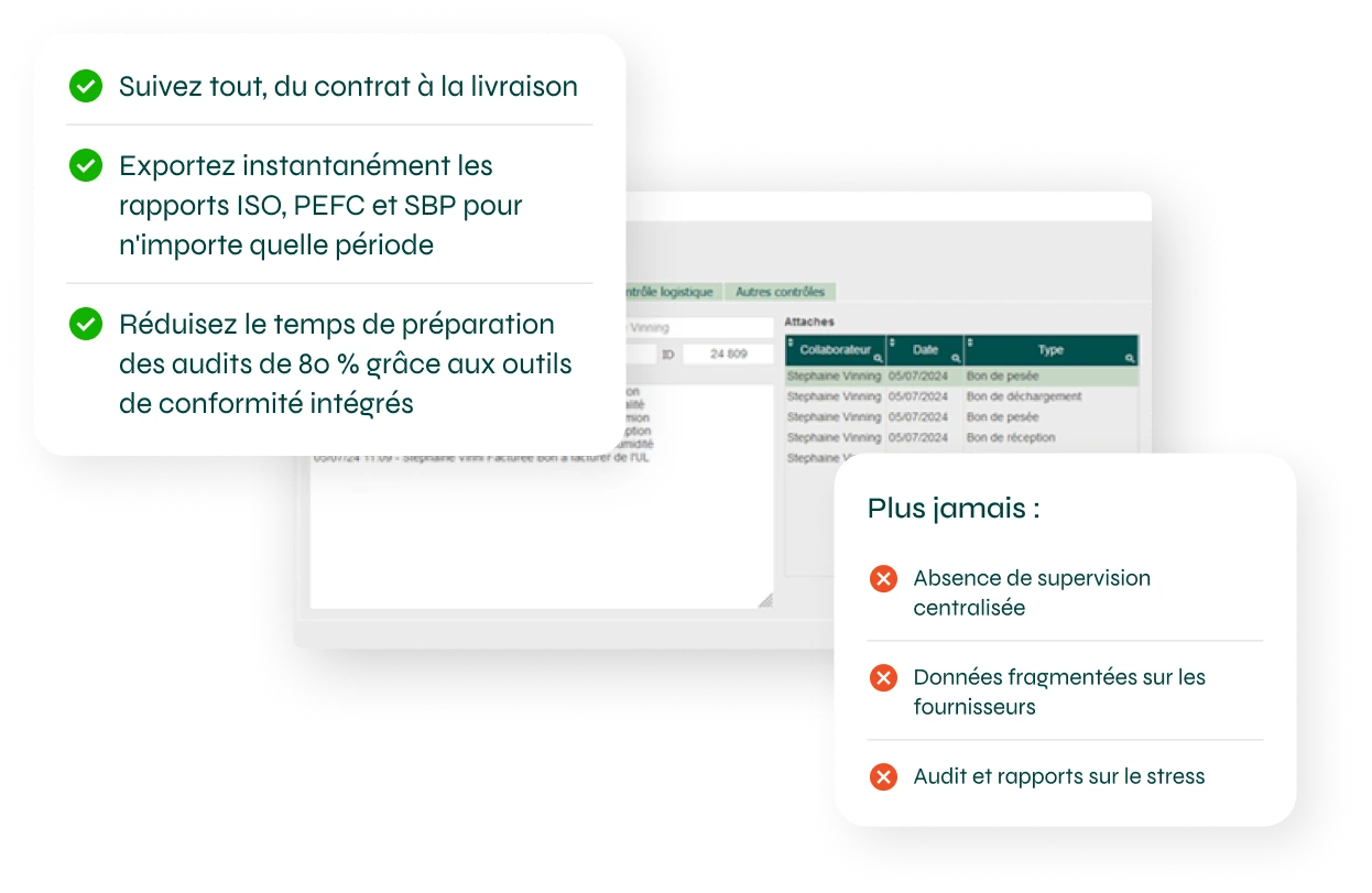 Suivez les livraisons, signalez les défauts, émettez des factures et soyez prêt pour les audits sur une seule plateforme.